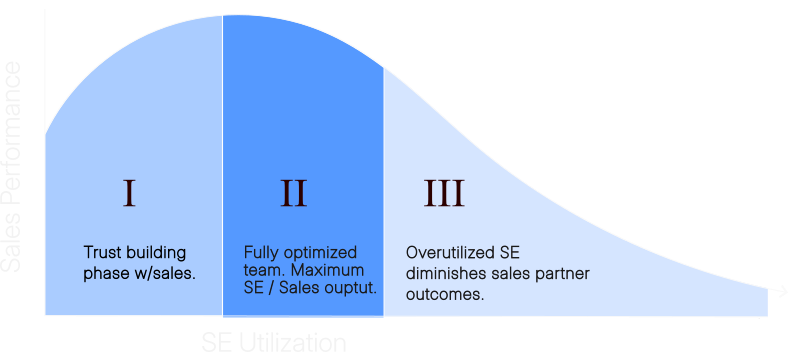 This may seem OK on the surface (i.e. you're fully utilizing your talent, right?). Wrong. And this study explains a major reason why. I've taken the liberty to repurpose a key diagram from it, which describes how SE utilization can positively or negatively affect the individual performance of their sales counterparts. It describes three phases: